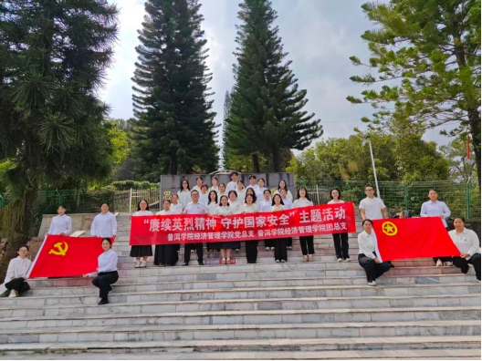 为深入学习贯彻总体国家安全观,传承红色基因、厚植爱国情怀,2026年4月2日下午,普洱学院经济管理学院党总支组织师生赴思茅区烈士陵园开展“赓续英烈精神 守护国家安全”活动。学院副科级以上领导、党员教师、学生党支部党员、“青马班”成员及学生代表参加活动。